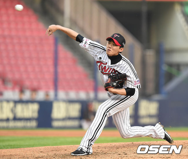 15일 오후 서울 잠실구장에서 열린 '2015 타이어뱅크 KBO 리그' LG 트윈스와 SK 와이번스의 경기 LG 선발 임정우가 역투하고 있다.