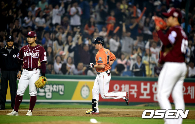 3회말 무사 1루에서 한화 이성열이 넥센 한현희를 상대로 투런포를 날리고 그라운드를 돌고 있다.