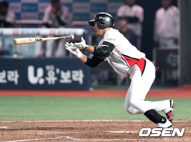 3회초 1사 1,3루에서 kt 박용근이 중전 적시타를 치고 있다.