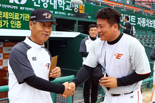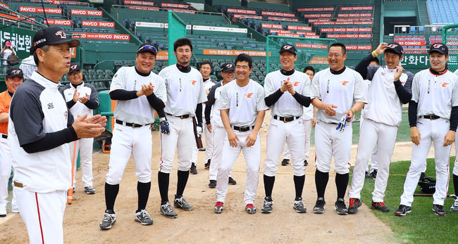 김성근 감독은 "선수들이 갑자기 춤을 추더라. (야구) 연습은 안 하고, 춤연습만 했나 보다"며 웃은 뒤 "스승의 날 선수들이 이렇게 이벤트를 해준 건 처음이다"고 말했다. 40년 넘게 지도자 생활을 했지만, 늘 승부의 세계에 있느라 이런 이벤트는 처음이었다. 이것을 기획한 사람이 바로 주장 김태균(33)이었다.