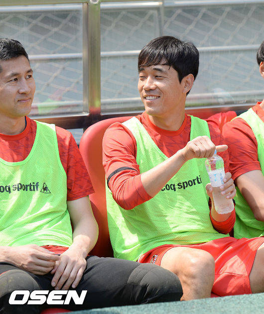 교체 멤버에 이름을 올린 서울 박주영이 벤치에서 미소짓고 있다.
