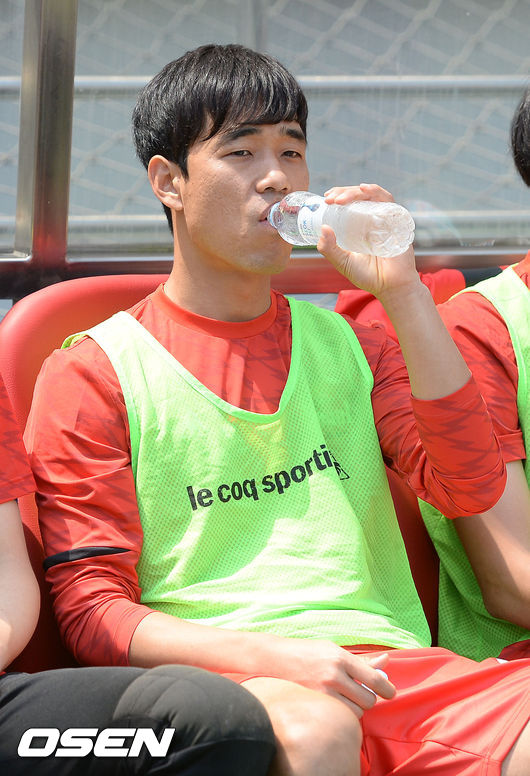교체 멤버에 이름을 올린 서울 박주영이 벤치에서 물을 마시고 있다.