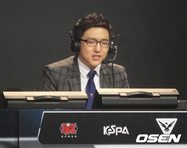 16일 오후 서울 용산 e스포츠 상설경기장에서 B조 경기가 벌어졌다. '초브라' 조한규 해설위원이 영어 해설을 진행하고 있다. 이번 롤챔스 승강전서 '초브라' 조한규 해설은 롤챔스 글로벌 해설가 ‘몬테’ 크리스토퍼 마이클스와 ‘도아’ 에릭 론퀴스트를 대신해 이번 롤챔스 승강전 글로벌 해설을 맡았다.
