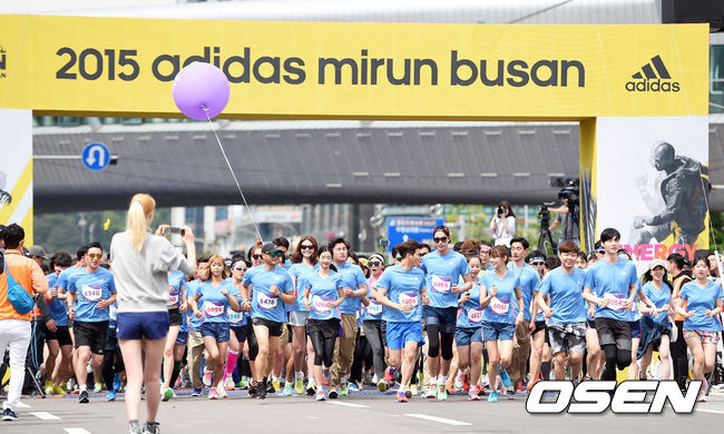 17일 부산 해운대구 중동 BEXCO 야외 주차장에서 진행된 '2015 아디다스 마이런 부산'에서 참가자들이 스타트를 하고 있다.