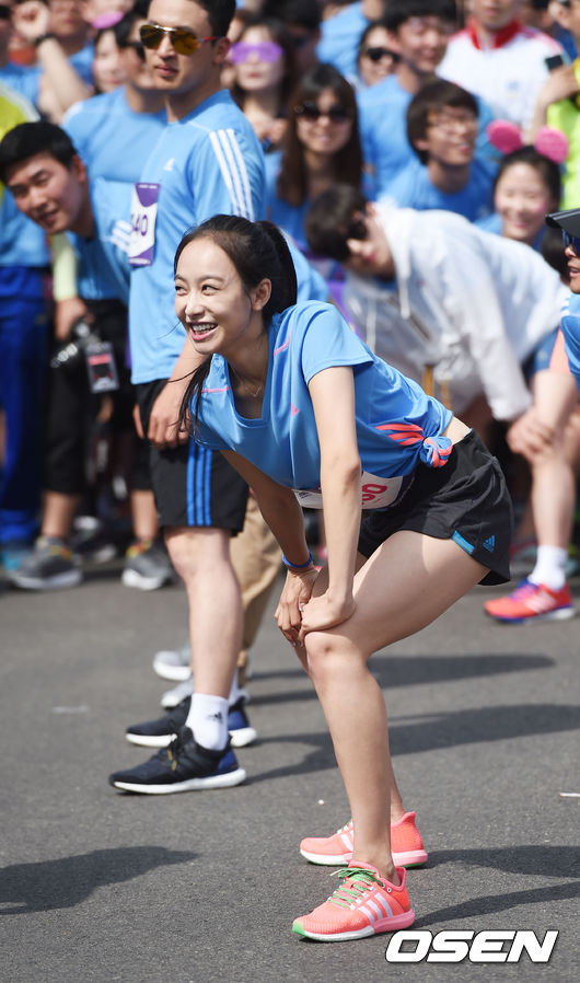 17일 부산 해운대구 중동 BEXCO 야외 주차장에서 진행된 '2015 아디다스 마이런 부산'에서 에프엑스 빅토리아가 스트레칭을 하고 있다.