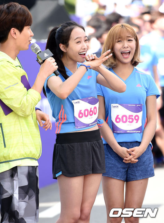 17일 부산 해운대구 중동 BEXCO 야외 주차장에서 진행된 '2015 아디다스 마이런 부산'에서 에프엑스 빅토리아가 카메라를 향해 깜찍한 포즈를 취하고 있다.