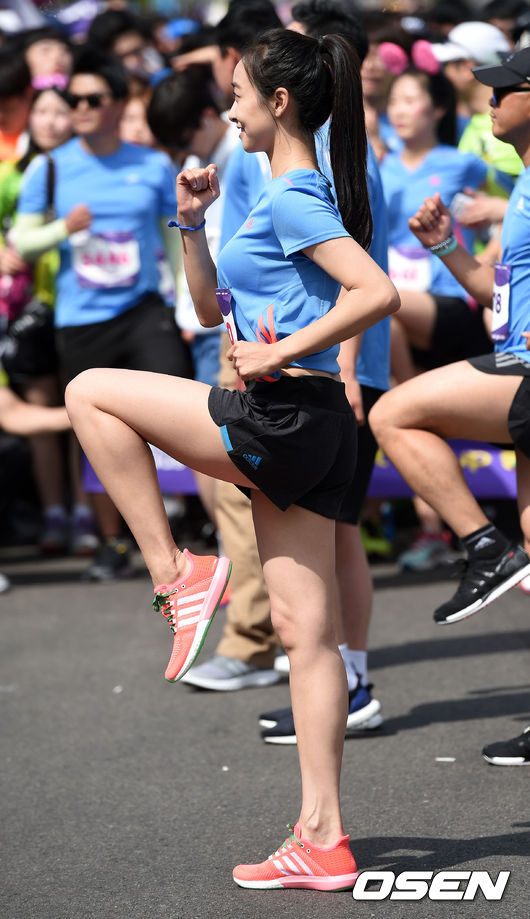 17일 부산 해운대구 중동 BEXCO 야외 주차장에서 진행된 '2015 아디다스 마이런 부산'에서 에프엑스 빅토리아가 스트레칭을 하고 있다.