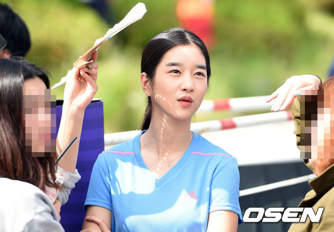 17일 부산 해운대구 중동 BEXCO 야외 주차장에서 진행된 '2015 아디다스 마이런 부산'에서 배우 서예지가 뜨거운 햇살을 피하고 있다.