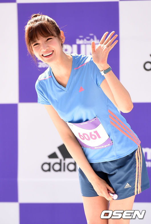 17일 부산 해운대구 중동 BEXCO 야외 주차장에서 진행된 '2015 아디다스 마이런 부산'에서 방송인 정가은이 포즈를 취하고 있다.