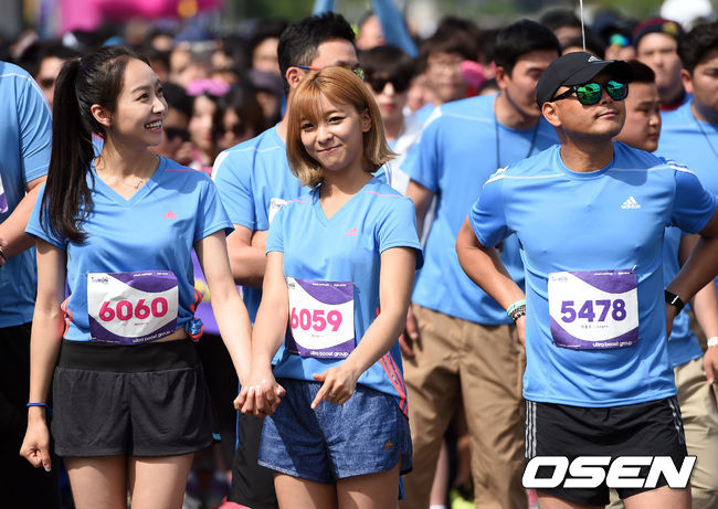 17일 부산 해운대구 중동 BEXCO 야외 주차장에서 진행된 '2015 아디다스 마이런 부산'에서 에프엑스 빅토리아와 루나가 스타트 라인서 준비하고 있다.