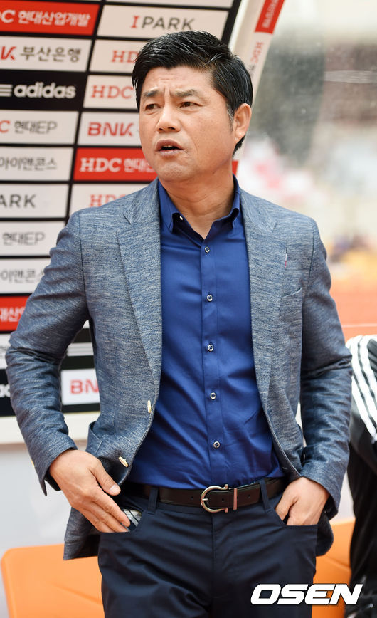 17일 오후 부산 아시아드경기장서 열린 2015 현대오일뱅크 K리그 클래식 부산 아이파크와 인천 유나이티드의 경기에 앞서 부산 윤성효 감독이 그라운드를 바라보고 있다.