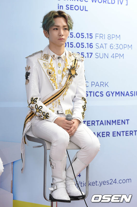 17일 오후 서울 송파구 올림픽공원 체조경기장에서 그룹 샤이니(SHINee)의 정규 4집 '오드(Odd)' 콘서트 관련 기자회견에서 샤이니 키가 자리하고 있다.