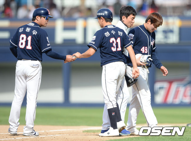 김병현(36, KIA 타이거즈)의 공에 맞은 민병헌(28, 두산 베어스)이 무릎 외측 타박상으로 인해 교체됐다.