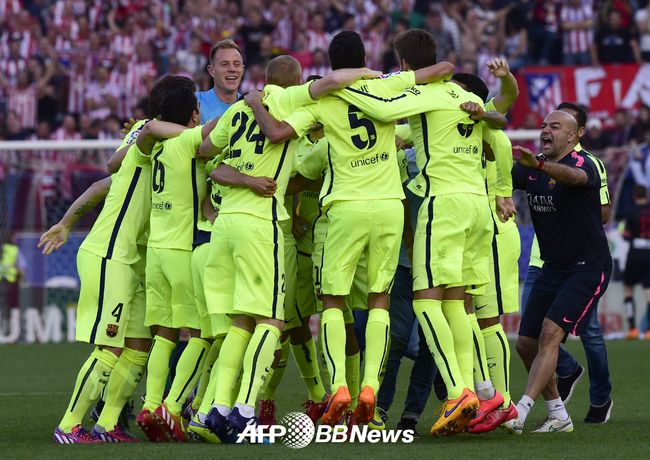 바르셀로나는 이날 새벽 스페인 에스타디오 비센테 칼데론에서 열린 2014-2015시즌 프리메라리가 37라운드 원정 경기서 AT 마드리드를 1-0으로 제압했다. 이날 승리로 선두 바르사는 최종전을 남겨두고 2위 레알 마드리드와 격차를 4점으로 벌리며 우승을 확정지었다.