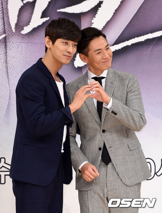 배우 주지훈과 연정훈이 포토타임을 갖고 있다.