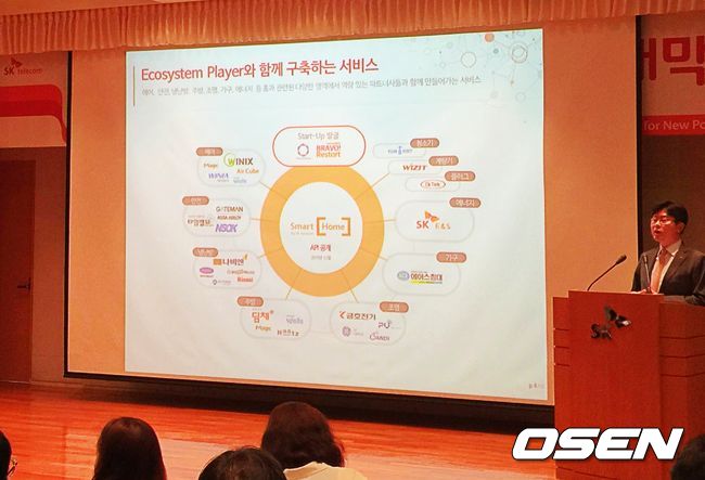 이날 SK텔레콤은 스마트홈 기기 관련 협력사들과 함께 자체 개발한 스마트홈 플랫폼을 탑재한 다양한 홈기기들과 새로운 스마트홈 서비스 브랜드를 공개하고, 향후 다양한 파트너사들과의 선순환적 생태계 확산 및 개개인에 최적화된 인텔리전트 시스템(Intelligent System)으로 스마트홈 서비스를 진화시켜 나가겠다는 비전을 발표했다.