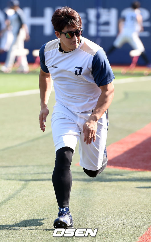21일 오후 경남 마산구장서 열리는 '2015 타이어뱅크 KBO 리그' NC 다이노스와 kt 위즈의 경기에 앞서 NC 나성범이 러닝훈련을 하고 있다.