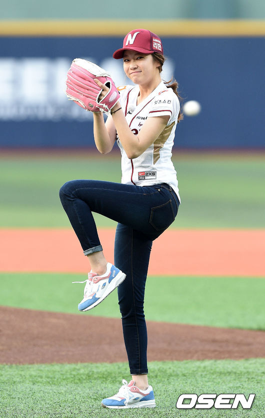 부부의 날을 맞아 '우결' 커플 공승연이 시구를 하고 있다.