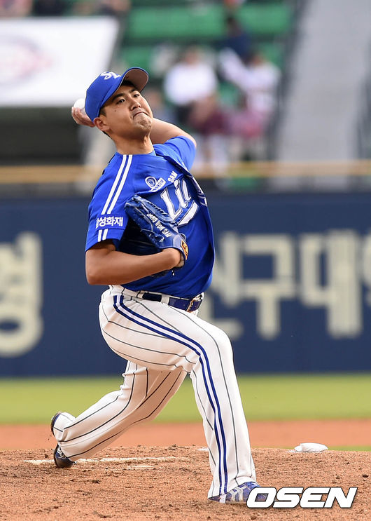 21일 오후 서울 잠실야구장에서 열린 '2015 타이어뱅크 KBO 프로야구' 두산 베어스와 삼성 라이온즈의 경기, 1회말 삼성 선발투수 장원삼이 힘차게 공을 던지고 있다.