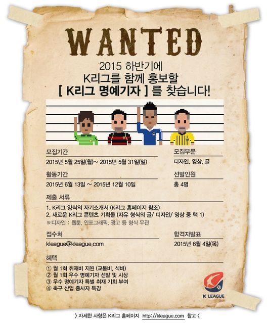 한국프로축구연맹(총재 권오갑, 이하 연맹)이 2015시즌 하반기 K리그를 홍보할 명예기자를 모집한다.