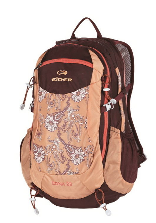 아이더 에드나 배낭은 당일 산행에 적합한 여성 전용 배낭이다. 전면부에 페이즐리 프린트를 적용해 여성스러우면서도 고급스러운 느낌을 더했다. 숄더 부분을 여성의 어깨와 가슴 라인에 맞춰 개발한 것이 특징. 허리 벨트는 탈부착이 가능하며 숨김 기능이 있어 다양한 스타일을 연출할 수 있다. 색상은 씨, 플럼 2가지다. 가격은 11만원.