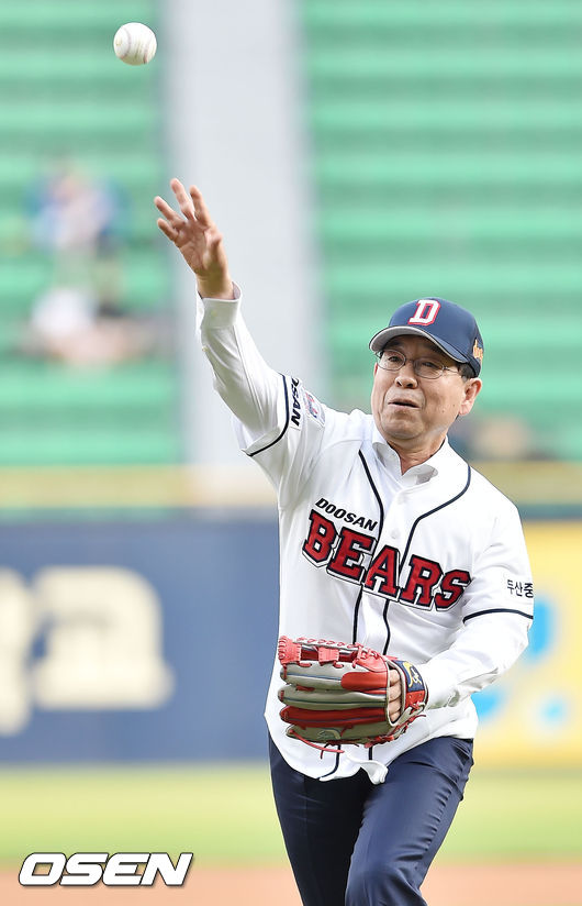 22일 오후 서울 잠실야구장에서 열린 '2015 타이어뱅크 KBO 리그' 두산 베어스와 SK 와이번스의 경기, 박원순 서울 시장이 시구를 하고 있다.