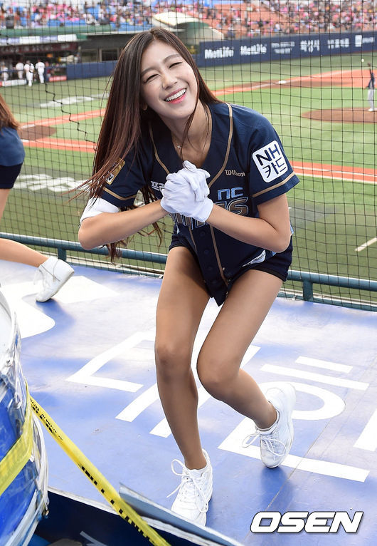 22일 오후 서울 목동구장에서 열린 '2015 타이어뱅크 KBO 리그' 넥센 히어로즈와 NC 다이노스의 경기, 치어리더 김연정이 공연을 펼치고 있다.
