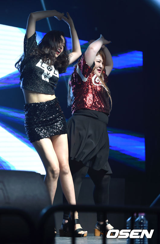 이하늬와 이국주가 멋진 공연을 선보이고 있다.