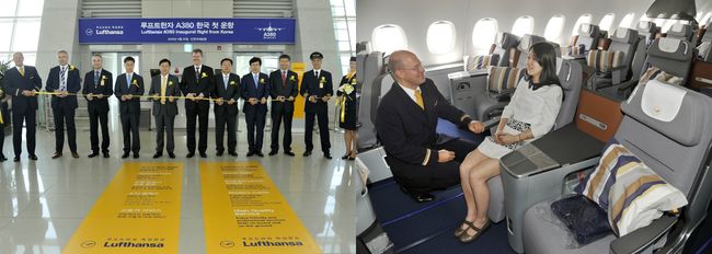 루프트한자는 이날 오후 인천국제공항에서 A380 취항 기념식을 갖고 첫 운항을 시작했다. A380의 첫 운항에 앞서 크리스토퍼 짐머 루프트한자 한국 지사장은 “지난 해 보잉사의 B747-8을 한국 최초로 도입한 것에 이어, 또 다시 유럽 항공사로서는 최초로 한국-유럽 노선에 A380을 도입하게 되어 매우 기쁘게 생각한다”며 “앞으로도 한국 승객들에게 더욱 편안한 여행경험을 선사하기 위한 노력을 아끼지 않을 것”이라는 소감을 밝혔다.