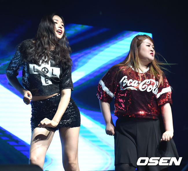 이하늬와 이국주가 멋진 공연을 선보이고 있다.