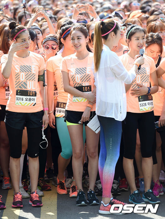 10km에 참가한 이시영을 최여진이 인터뷰 하고 있다.