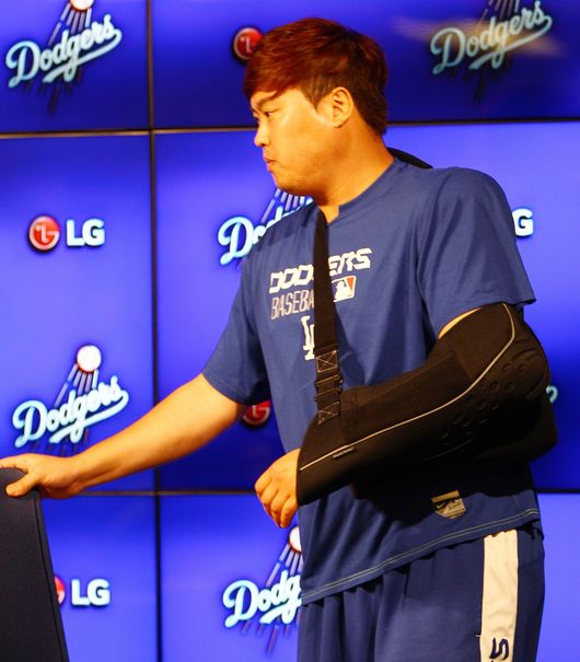 [OSEN=다저스타디움(LA 미국 캘리포니아주), 박승현 특파원]23일(이하 한국시간) LA 다저스 류현진이 다저스타디움에서 가진 기자회견을 통해 자신의 어깨 관절순은 다저스 입단 당시에도 손상 돼 있었다는 사실을 밝히면서 현지 언론들도 이 점에 대해 큰 관심을 갖는 분위기다.