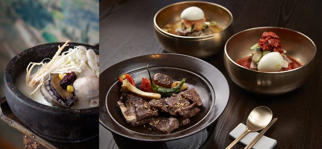 냉면은 소고기와 닭고기를 함께 우려내 감칠맛을 더한 물냉면과 가오리 무침 고명을 곁들인 비빔냉면 2종으로 선보인다. 냉면과 최고의 궁합을 이루는 양념갈비가 함께 제공되는데 양념갈비는 무형문화재 죽염 제조장 효산 스님의 죽염간장으로 맛을 내 건강까지 생각했다. 물냉면과 양념갈비 세트는 4만 6000원, 비빔냉면과 양념갈비 세트는 4만 9000원이다.