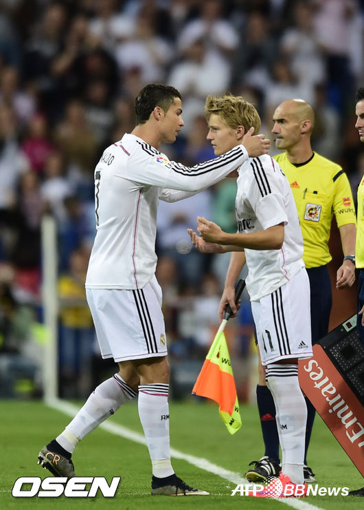 노르웨이의 '천재' 마르틴 외데가르드(17)가 헤타페와의 리그 최종전서 레알 마드리드 공식 데뷔전을 치렀다. 레알 마드리드는 24일(한국시간) 새벽 스페인 마드리드 산티아고 베르나베우서 열린 2014-2015시즌 프리메라리가 38라운드 최종전서 헤타페를 7-3으로 제압했다.