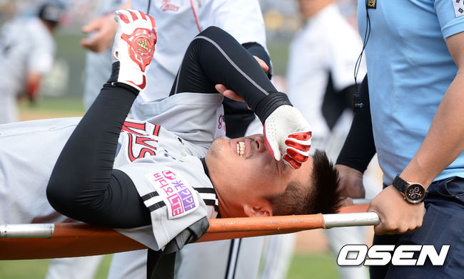 스스로 일어서지 못할 만큼, 통증을 호소했고, 결국 들것에 실려 그라운드를 떠났다. LG는 이진영 대신 이민재를 대주자로 넣었다.