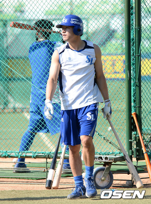 26일 오후 대구 시민운동장야구장에서 열릴 '2015 타이어뱅크 KBO 리그' 삼성과 넥센 히어로즈의 경기에 앞서 삼성 김상수가 타격 훈련을 하고 있다.