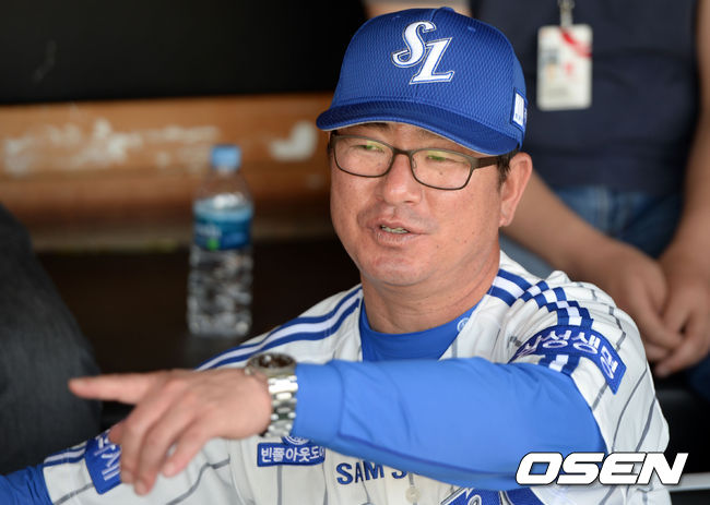 26일 오후 대구 시민운동장야구장에서 열릴 '2015 타이어뱅크 KBO 리그' 삼성과 넥센 히어로즈의 경기에 앞서 삼성 류중일 감독이 취재진과 이야기를 나누고 있다.