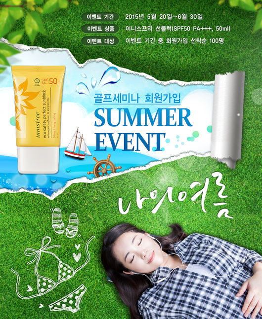 이번 이벤트는 오는 6월 30일까지 진행하며 회원 가입자 선착순 100명을 대상으로 이니스프리 선블럭을 증정, 여름철 라운드와 골프장 코스관리 작업 등을 지원할 예정이다.