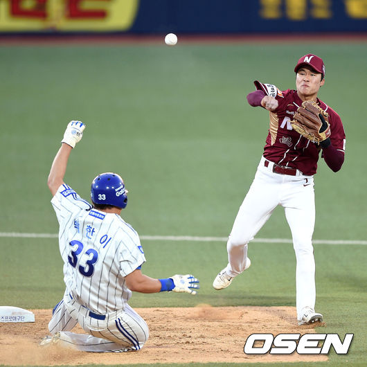 3회말 무사 1루에서 넥센 김하성이 삼성 채태인을 병살타로 처리하고 있다.