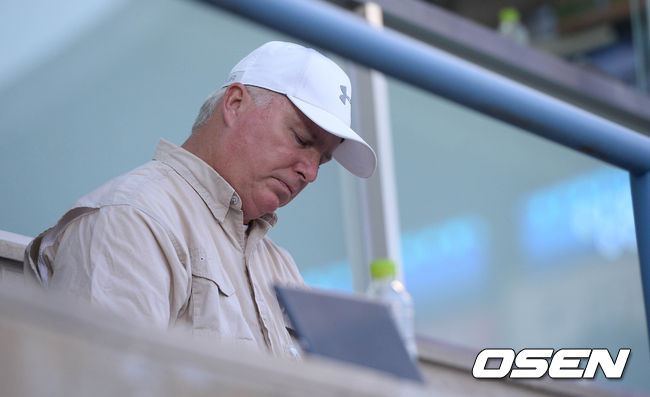 26일 오후 서울 잠실야구장에서 열린 '2015 타이어뱅크 KBO 리그' LG 트윈스와 kt 위즈의 경기, ML 스카우터가 경기를 지켜보고 있다.