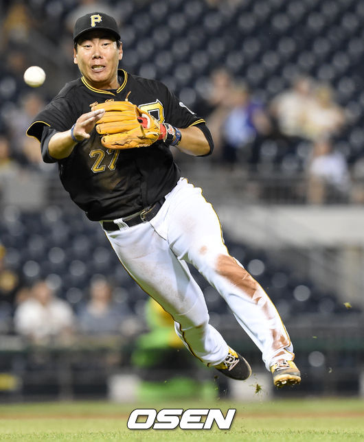 9회 디 고든 타구 처리하는 피츠버그 3루수 강정호,'수비도 척척'