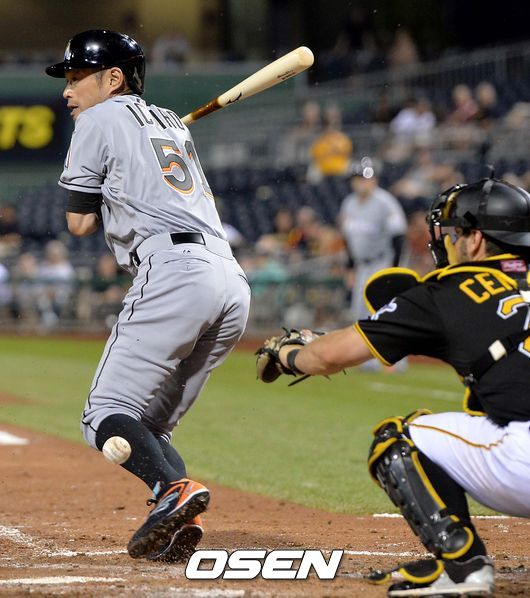 반면, 베이브 루스의 메이저리그 기록인 2873안타를 제치고 역대 42위의 안타를 생산해 낸 일본인 타자 스즈키 이치로는 7회초 투수 타석에 대타로 등장해 포수 땅볼로 물러나며 아쉬움을 샀다. /dreamer@osen.co.kr