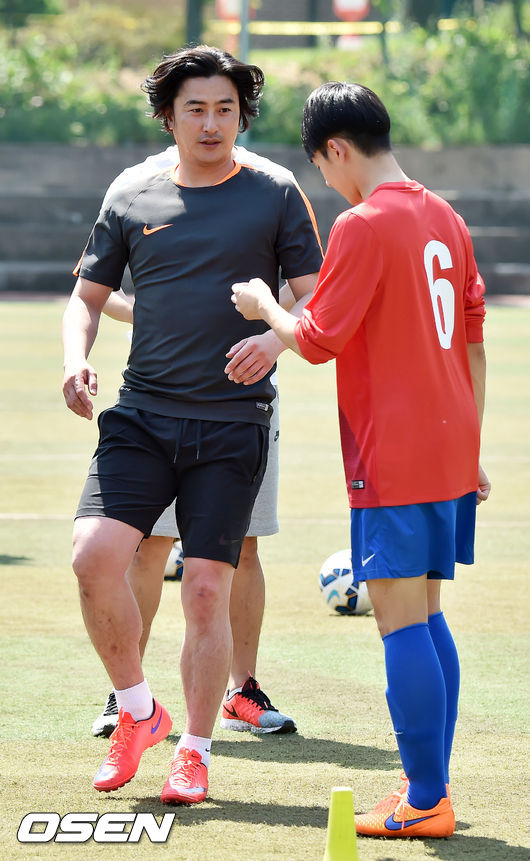 27일 오후 서울 광진구에 위치한 건국대학교 사범대학 부속고등학교(이하 건대부고)에서 나이키풋볼 스쿨 챌린지 (Nike Football School Challenge)의 오프닝 행사, 안정환이 코칭 세션을 진행하며 지도를 하고 있다.