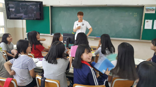 또한 각 교실에서는 선수들과 함께 사진을 찍으며 평소 축구 선수들에게 궁금했던 점이나 자신의 꿈을 이루기 위해 어떻게 했는지에 대해 이야기를 나누었다.