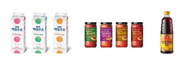 왼쪽부터 매일유업 매일우유, 동원 F&B 파스타를 만들자, 샘표 양조간장 501