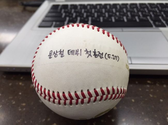 아래-kt 위즈 제공. 잠실구장에서 kt 팬에게 회수한 문상철의 데뷔 첫 홈런 공.