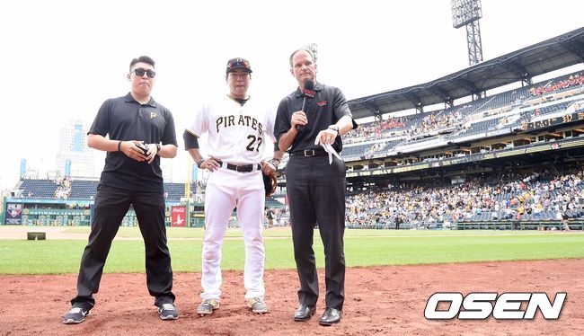 경기 종료 후 피츠버그 강정호가 홈 팬들 앞에서 수훈 선수 인터뷰를 준비하고 있다./dreamer@osen.co.kr
