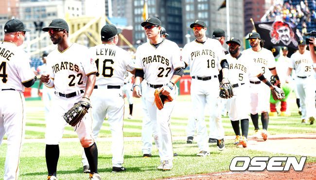 경기 종료 후 피츠버그 강정호를 비롯한 선수들과 코칭 스태프가 승리의 인사를 나누고 있다./dreamer@osen.co.kr