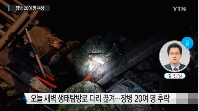28일 새벽 1시 반쯤 강원도 화천군 사내면에서 육군 27사단 소속 장병들이 건너던 생태탐방로의 나무 다리가 끊어졌다.