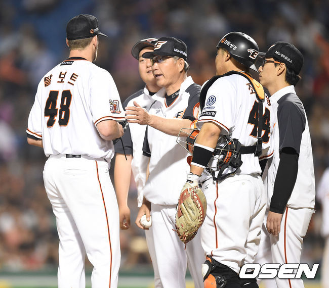 인상적인 장면은 7회였다. 3-0으로 리드한 1사 1·3루 위기에서 니시모토 타카시 투수코치가 올라왔고, 투구수 102개에서 교체가 예상됐다. 하지만 탈보트는 마운드에서 내려오지 않았고, 박기남을 2루 직선타로 잡은 뒤 송창식에게 바통을 넘겼다. 투수교체 타이밍이 빠른 김성근 감독에게는 일종의 '에이스 대우'였다.